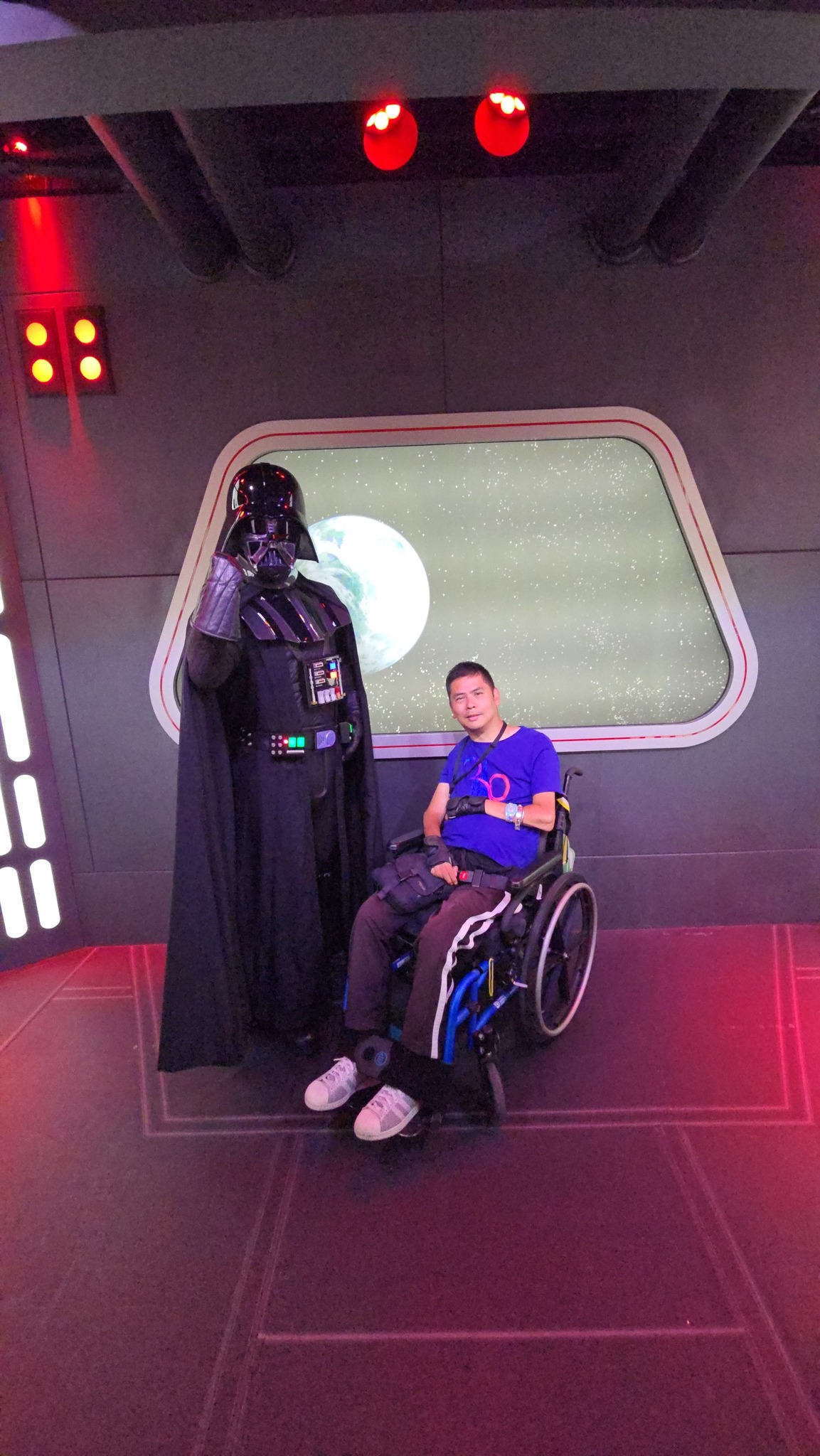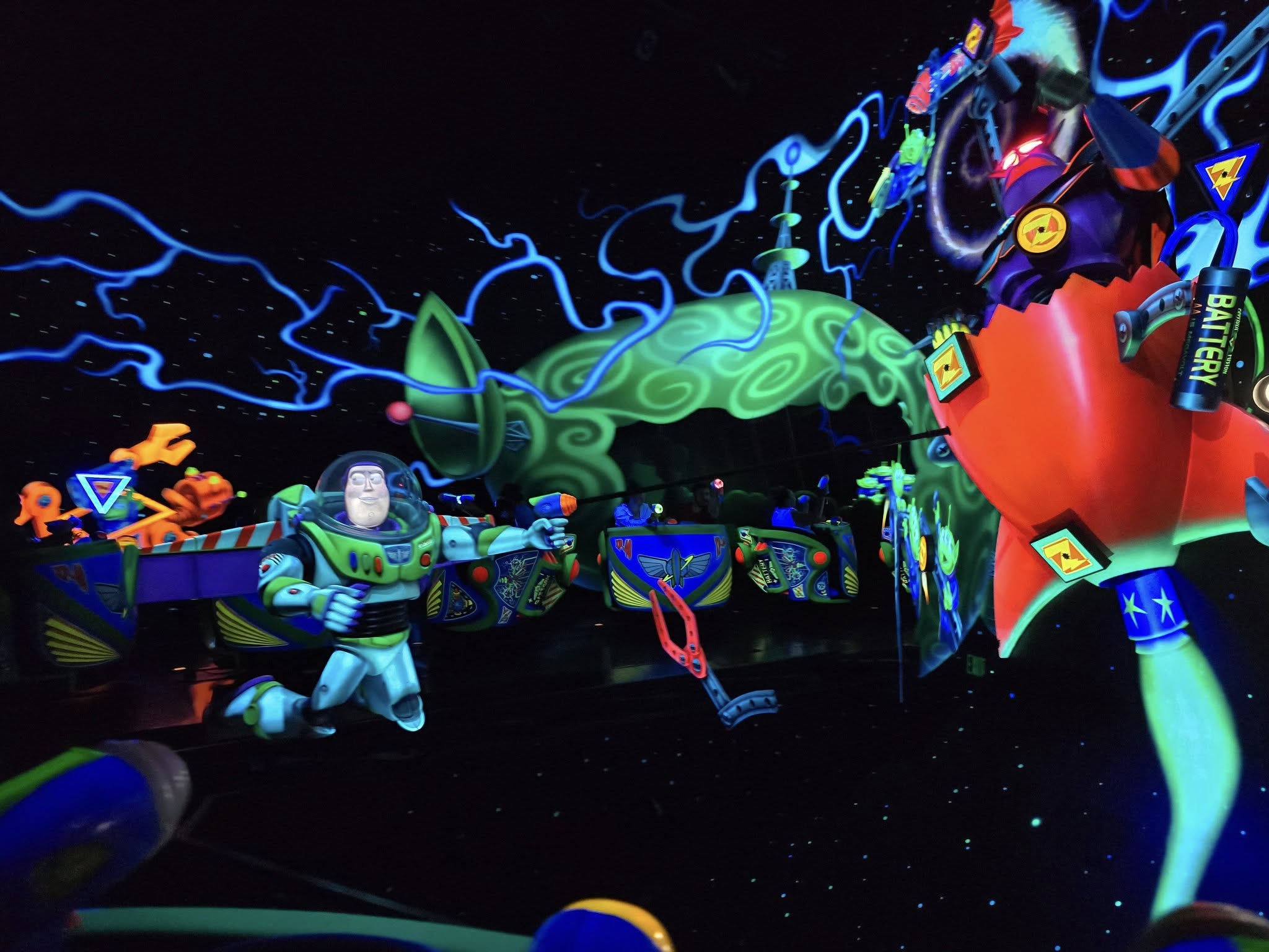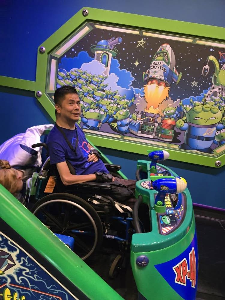We arrived at the park around 11:45 AM and after taking pics in front of the 70th anniversary signs, we went to Tomorrowland for our first DAS selection: Buzz Lightyear Astro Blasters. I have been on this ride on my previous 2 visits to Disneyland, Magic Kingdom and Disneyland Paris. This ride is wheelchair accessible but I couldn’t hold the laser gun.