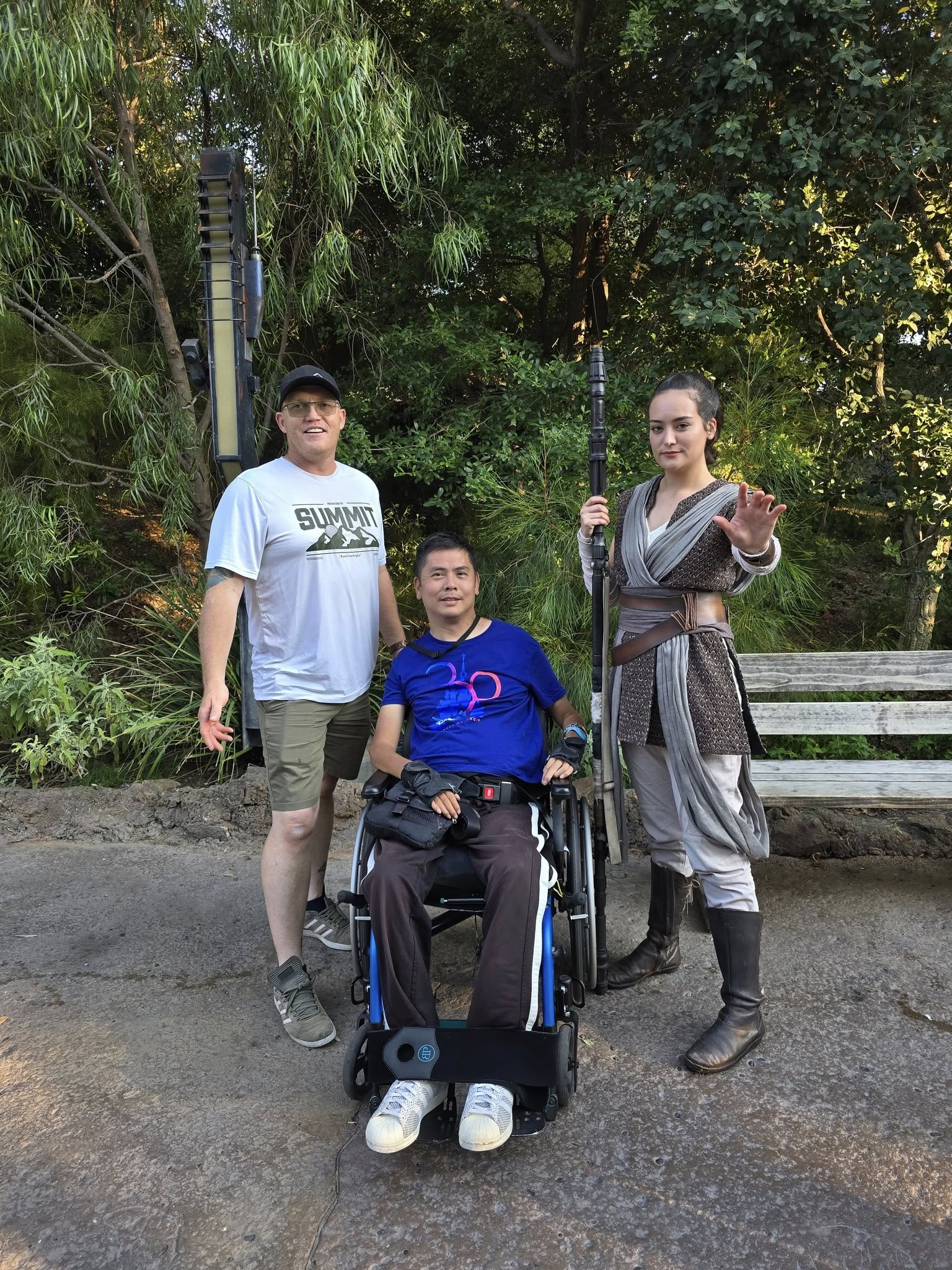 While waiting for our DAS return time, I was able to lean back, rest and pressure relief a bit. We also explored around Galaxy Edge for a bit. We also got a chance to have a few character pics as they happen to be walking by us. We got pics with both Chewbacca and Rey Skywalker.