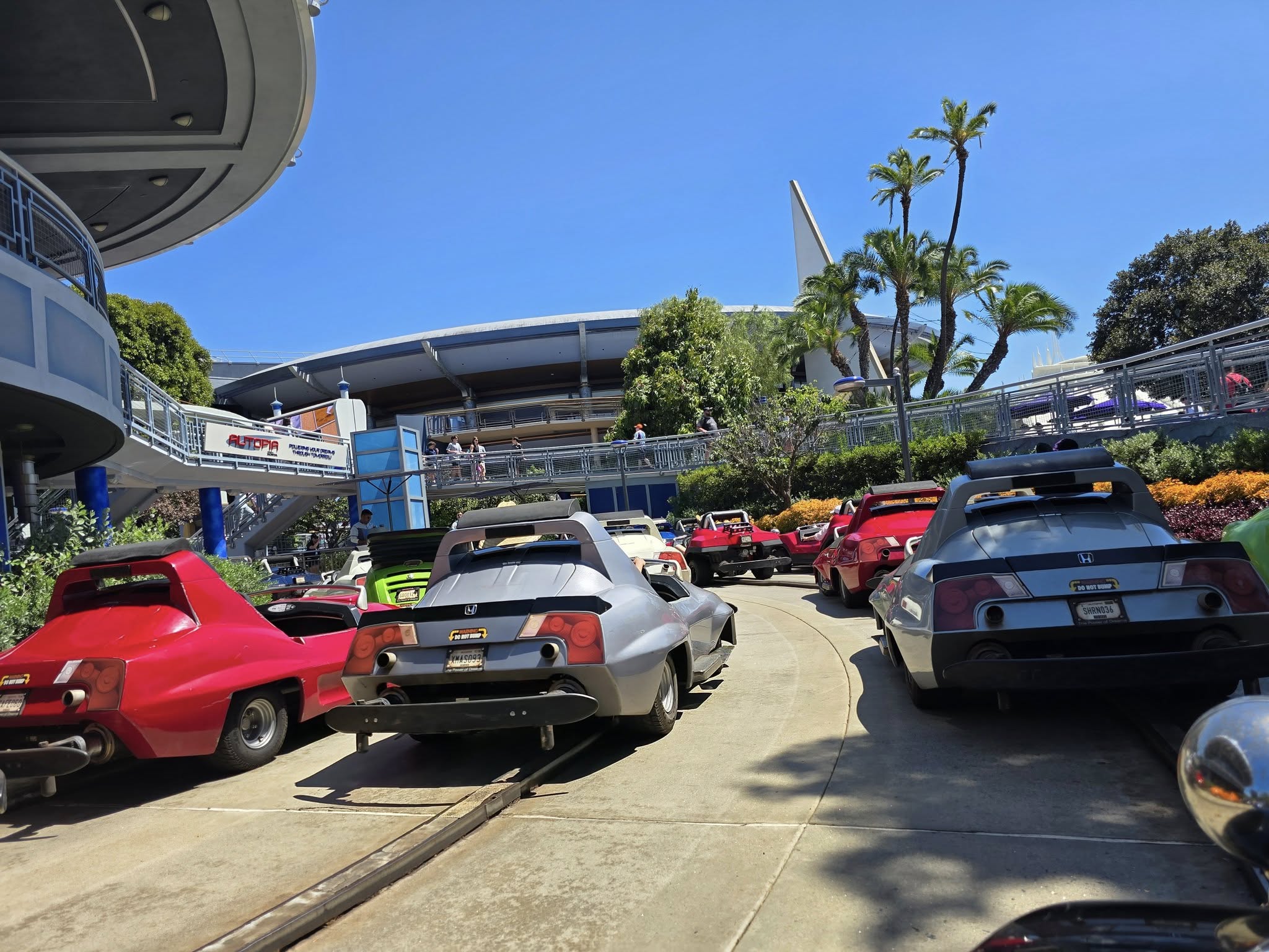 We then went next door to go on Autopia ride. This is a race track attraction that has riders steer cars through an enclosed track. This ride requires my friend to physically lift me into the car vehicle. The car never could get really fast and it was a fun ride that was never too scary going through the curves and inclines of the course.