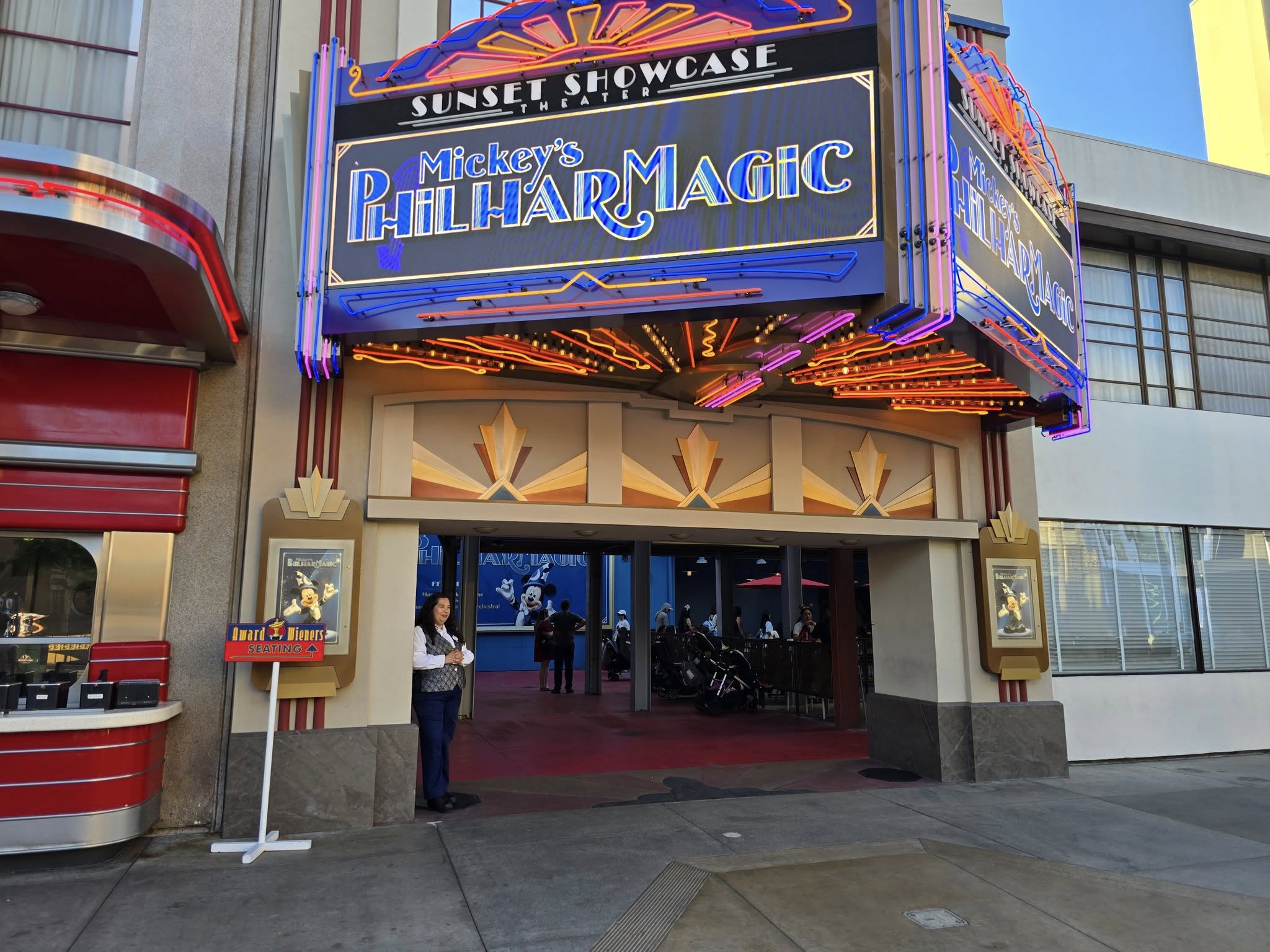 After our dinner, we headed to Sunset Showcase Theater to watch Mickey’s PhilharMagic show. It opened in 2019 and is a 12 minute 3D show where Donald Duck is being swept into different musical numbers from classic Disney animated movies. There is special effects like wind and water during the movie.