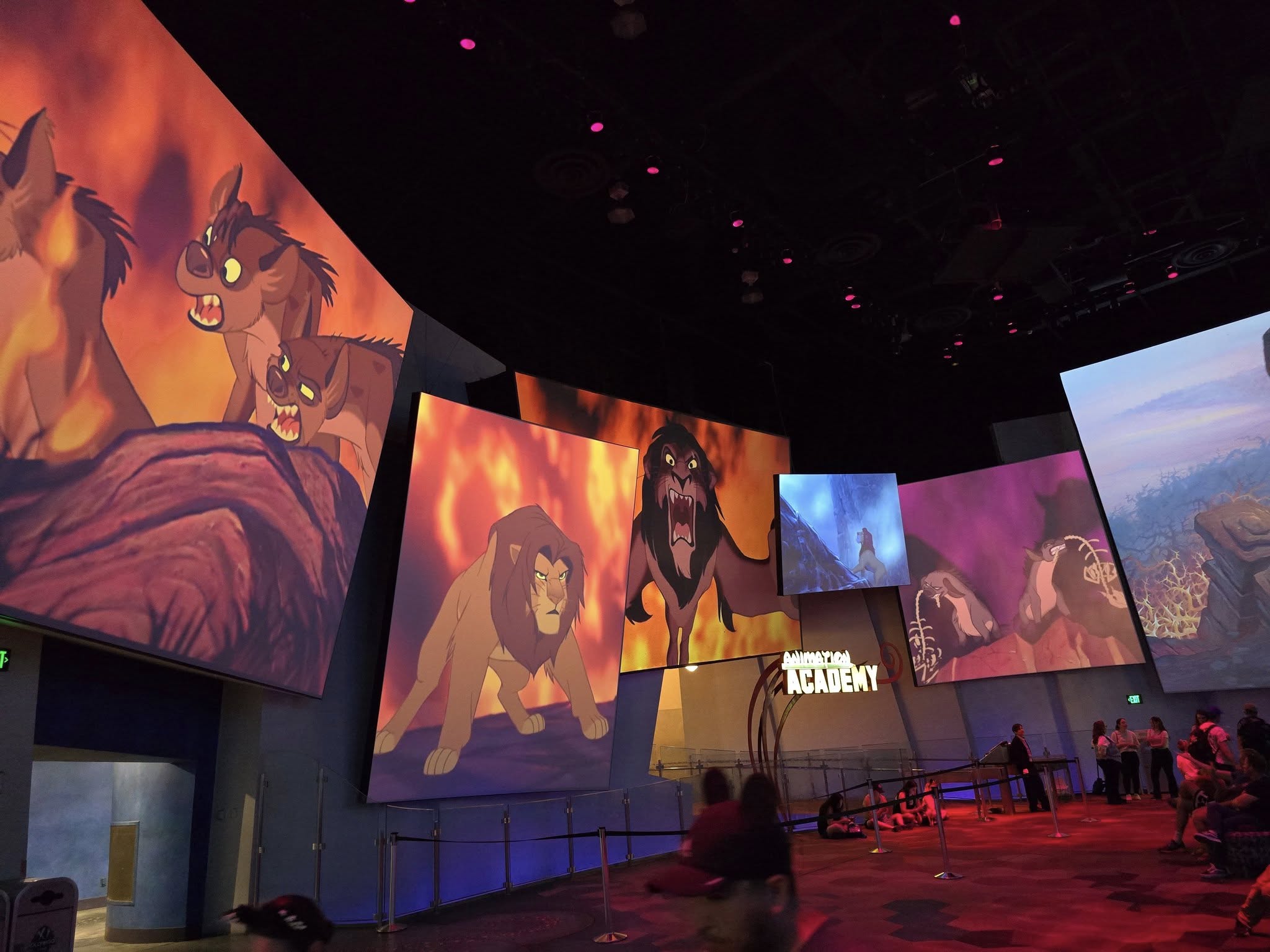 We then went to the Avengers store and took a few more character pics before heading to Hollywood Land to visit the Disney Animation Building. This attraction opened when DCA opened back on 2001. As we enter the building, we are in the Animation Courtyard where we see large projections of animated Disney movies.