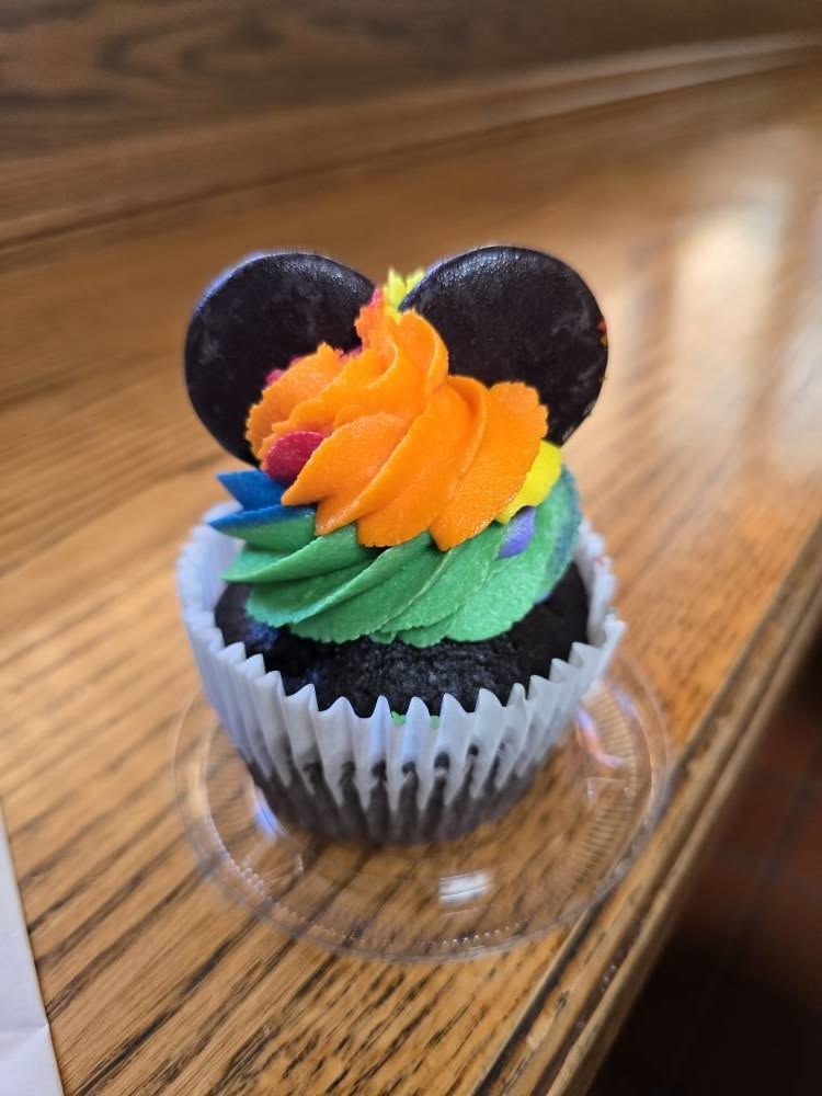 I really wanted to get a snack item from somewhere went nearby to Fiddler, Fifer & Practical Cafe. There were lots of cool looking baked goods like cookies, cupcakes, tarts and more. There were also some fancy looking candy apples that were up to $15 each. I decided to get a special 70th anniversary cupcake that costs $6.49. It was really good but am not sure if it’s worth that high price.