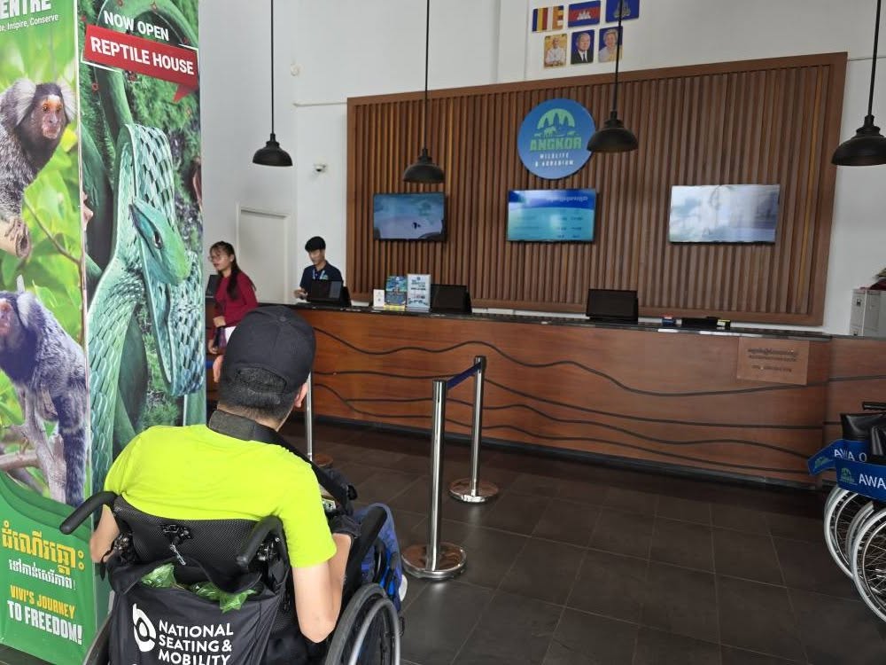 I was quite impressed with the accessibility of Angkor Wildlife & Aquarium. First, they do offer a free companion ticket with the purchase of an adult ticket for the wheelchair guest. Since it was only opened a few years ago, everything looked very modern and still new.