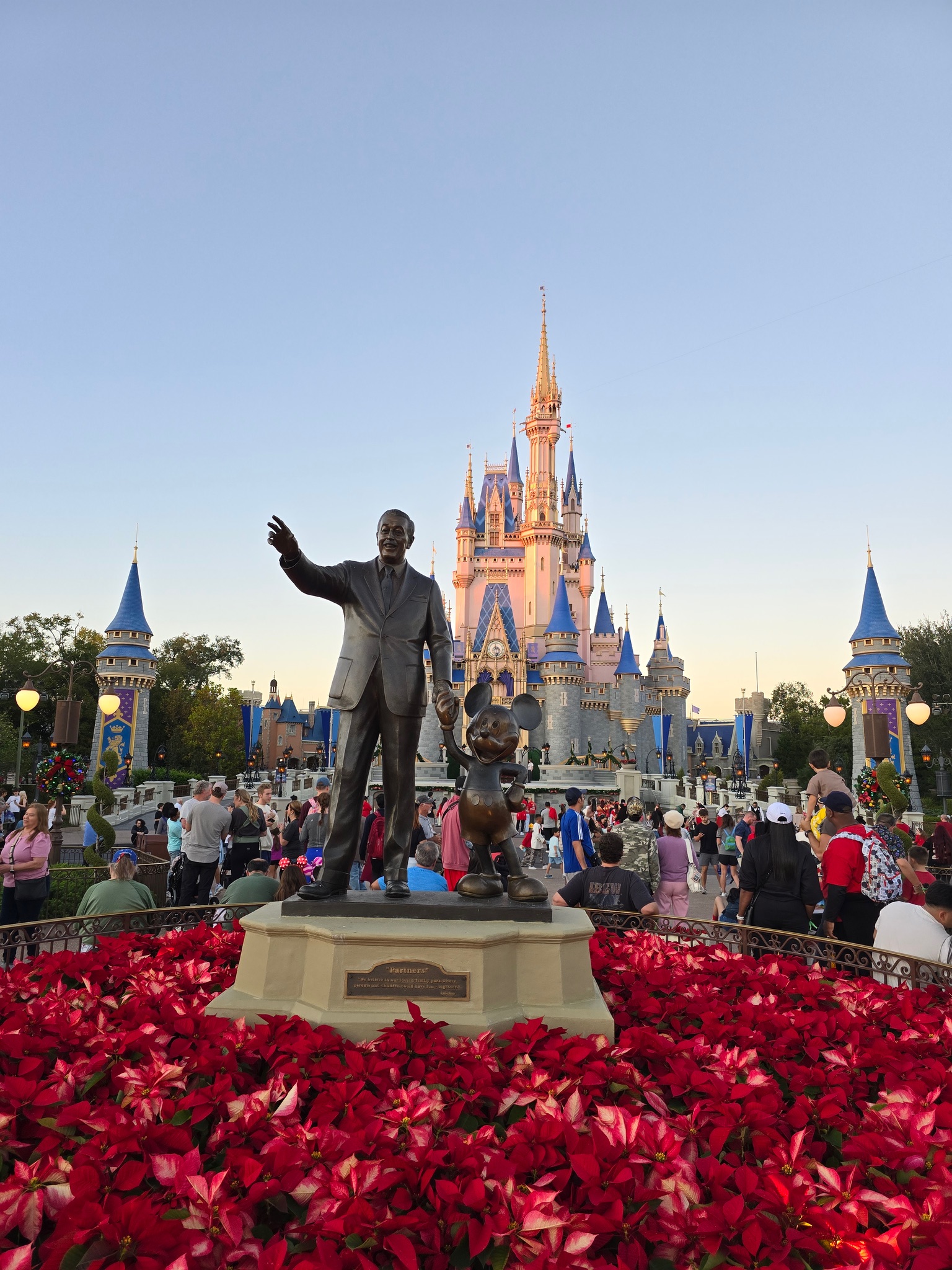 We started at Mainstreet, USA because this is where the entrance leads us. We were checking out some of the stores and Christmas decorations. We of course took pictures in front of the iconic Cinderella castle despite the crowds.