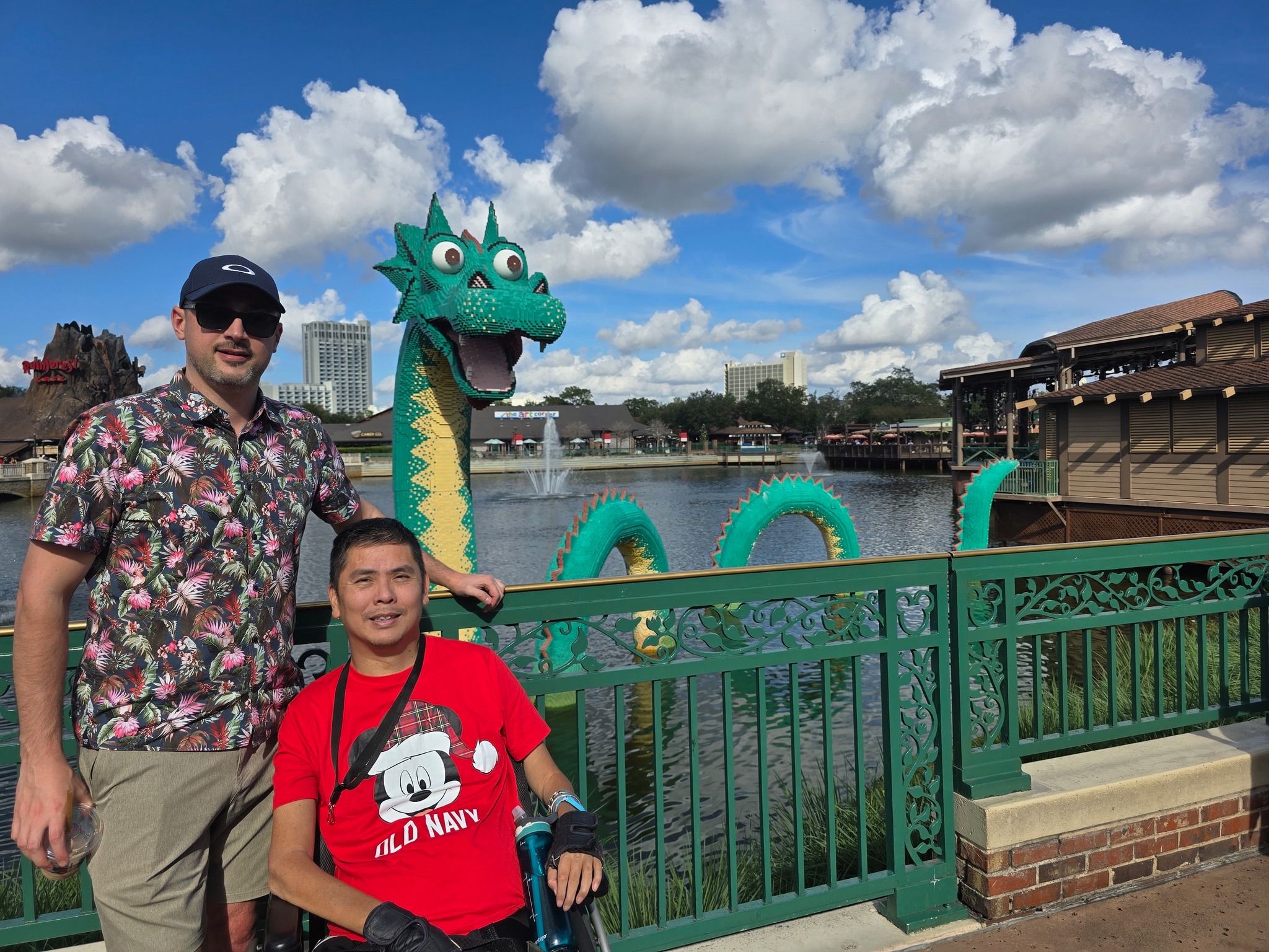 There is always something happening at Disney Springs as there is live music, movie theater, Aerophile Balloon Flight, and a volcano show at Rainforest Cafe. We happened to catch some live Jazz music at one of the outside stages. I would have to come back to try the balloon ride as it is wheelchair accessible. We did catch the end part of the volcano show as that occurs every half hour and lasts only a few minutes.