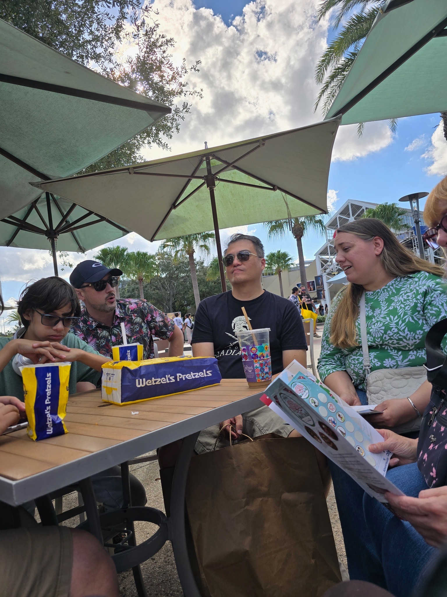 Table service (sit down) restaurants can get busy, so having a reservation ahead of time is always best. We ate at a quick serve place so our wait wasn’t too long. There are also many food kiosks and snack places located throughout Disney Springs. My friends did get some snacks and drinks at Wetzel Pretzels and got 23% off with the D23 Gold membership card.