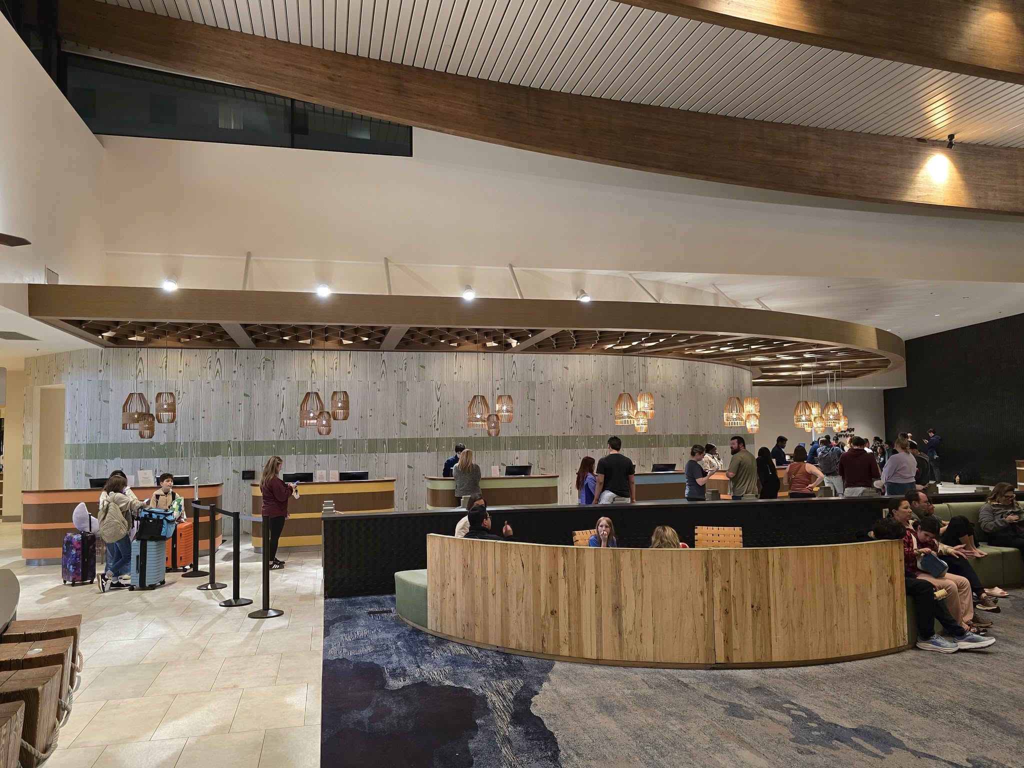 We arrived at the hotel by 6:30 PM using the pre-booked Universal’s SuperStar shuttle bus. The cost was $23 USD per person and stops at any Universal hotel. The hotel looked very nice for being a value resort and getting inside to the lobby/front desk area was easy with large automatic doors.