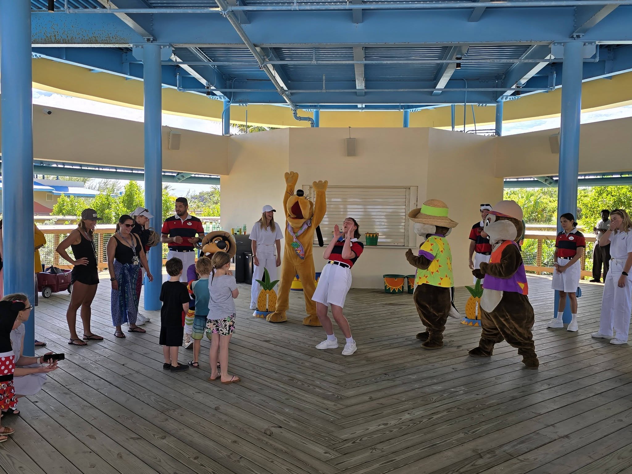 After we ate, we decided to explore more of the family side of Lookout Cay since we didn’t on our last visit.  We went to see Disney Fun in the Sun Beach Bash at 1 PM at the Play Play Pavilion which was more of a kids show so we left.