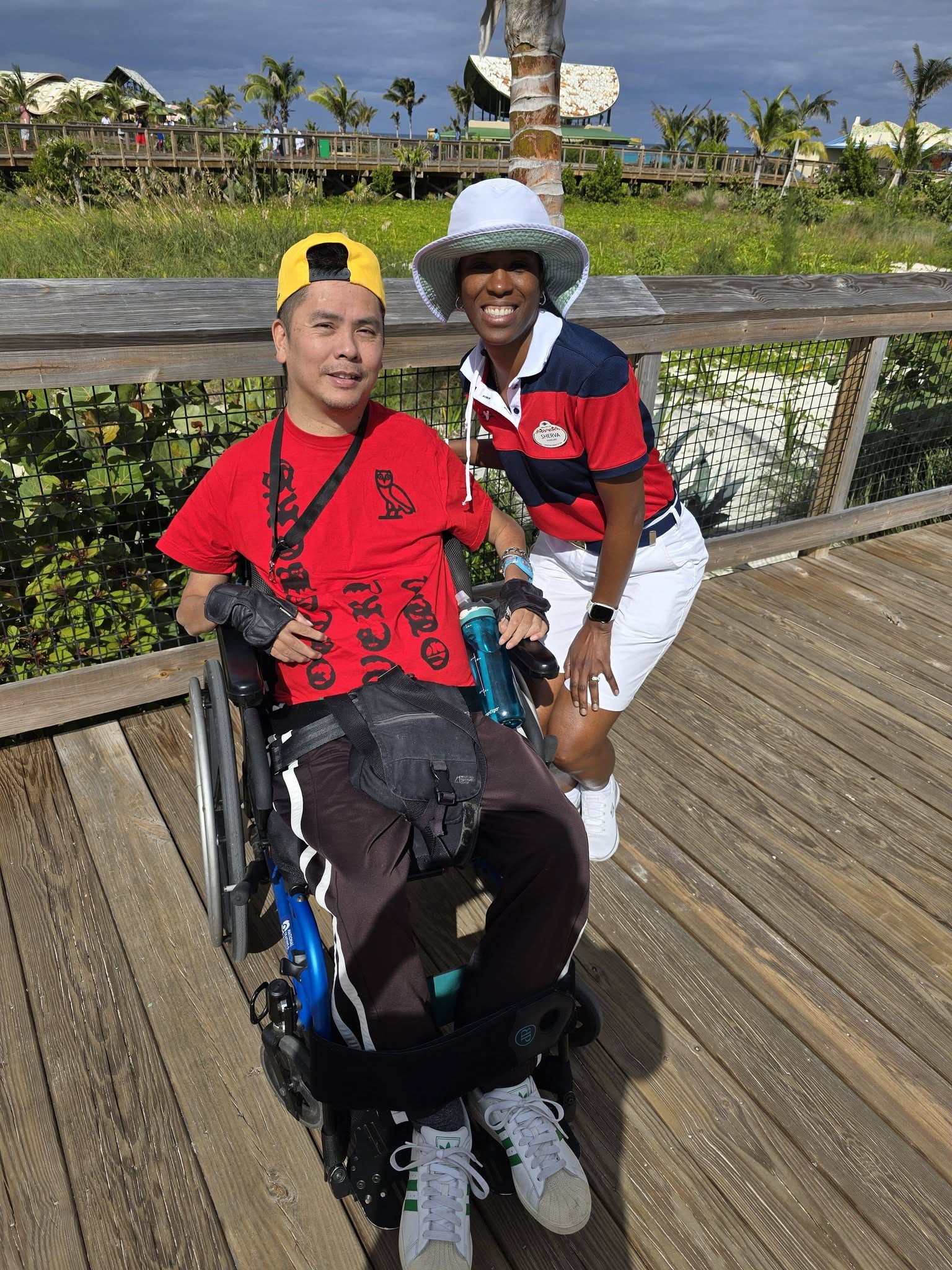 There were beach wheelchairs that were free to borrow but we never used.  There were some paved pathways at the beach areas and around the property which was easy to wheel on.  The wooden bridges and walkways were pretty convenient.  The shops, restaurants and Goombay Cultural Center were all accessible.