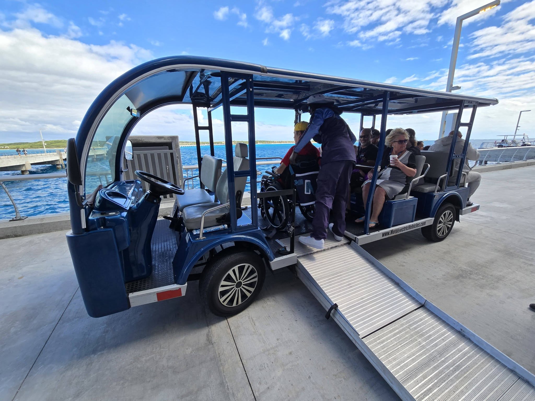 only those with mobility issues can use these accessible golf carts from dock to Mabrika Cove