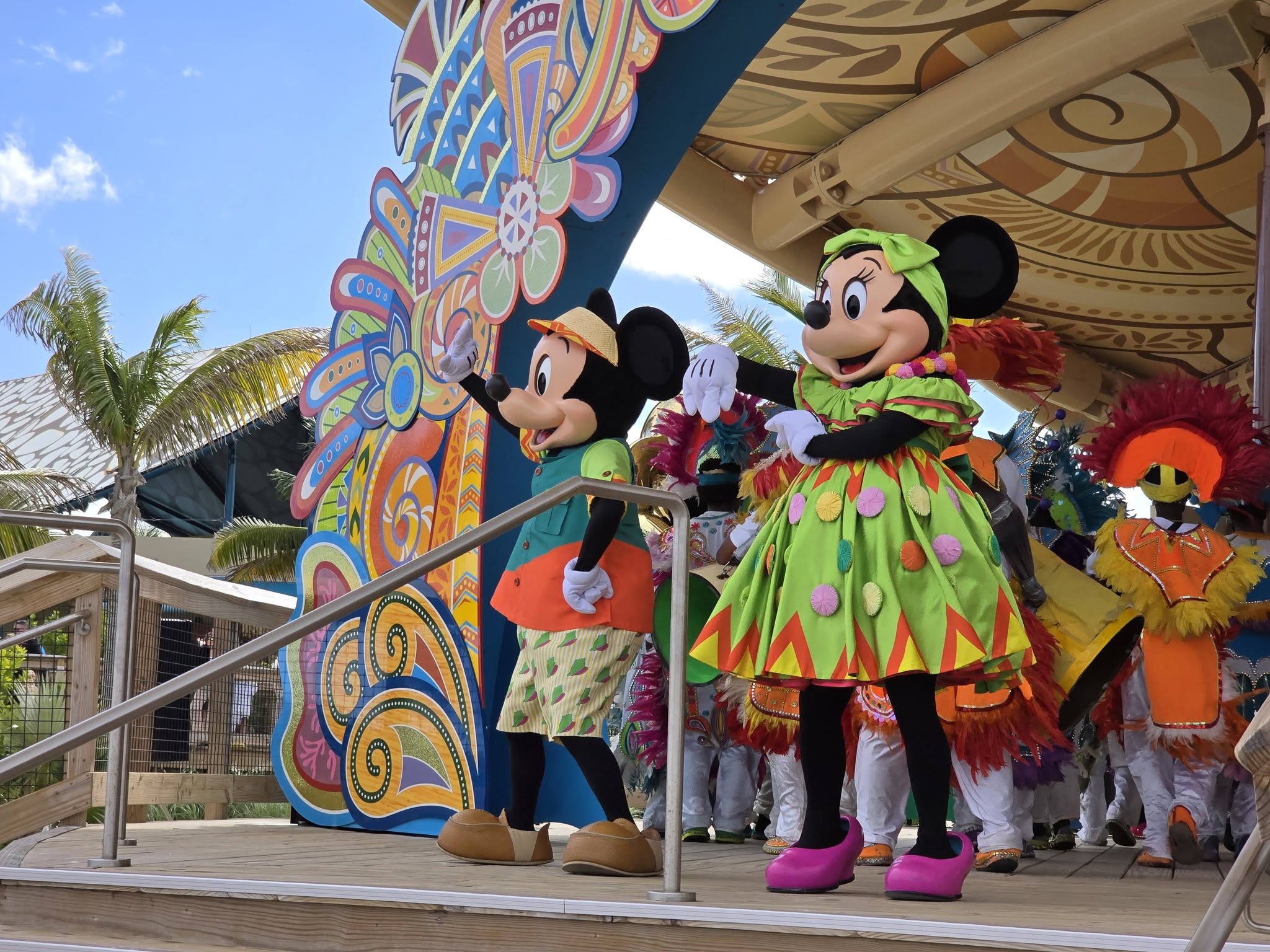 We then went to Goombay Cultural Center to watch the 2 PM show of RUSH! A Junkanoo Celebration.  This 20 minute Bahamian show is high energy and features dancers with bright and elaborate costumes and instruments getting people to dance along and participate in a marching parade.  For this show, Mickey and Minnie Mouse were in their traditional Bahamian outfits joining in on the fun.