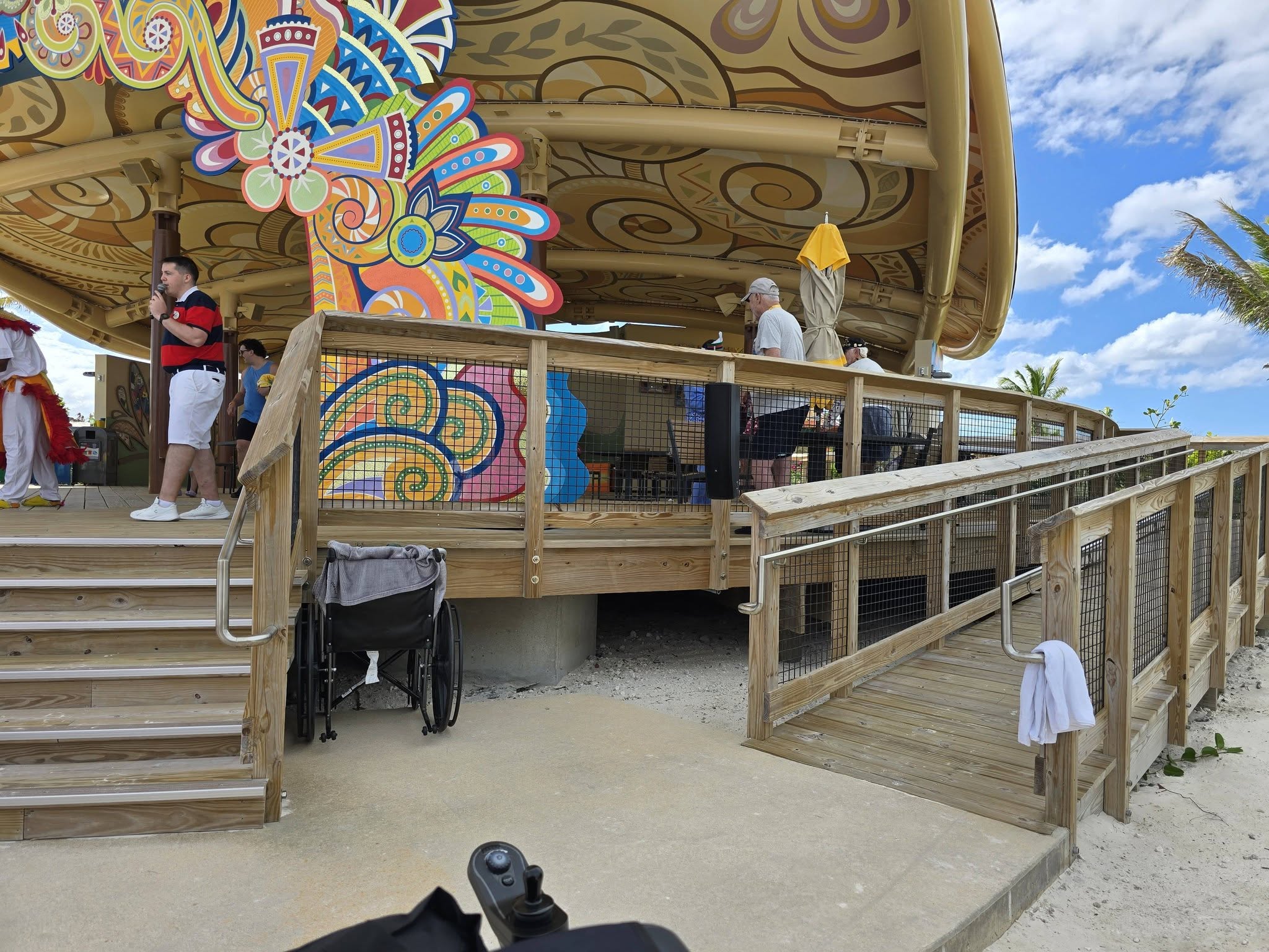 I thought accessibility at Disney’s Lookout Cay at Lighthouse Point to be pretty good.  The walk from the ship to Mabrika Cove is a bit long but am glad those with mobility issues are able to use the tram to make it easier.  They are pretty strict with this rule because there are only a limited number of those vehicles.